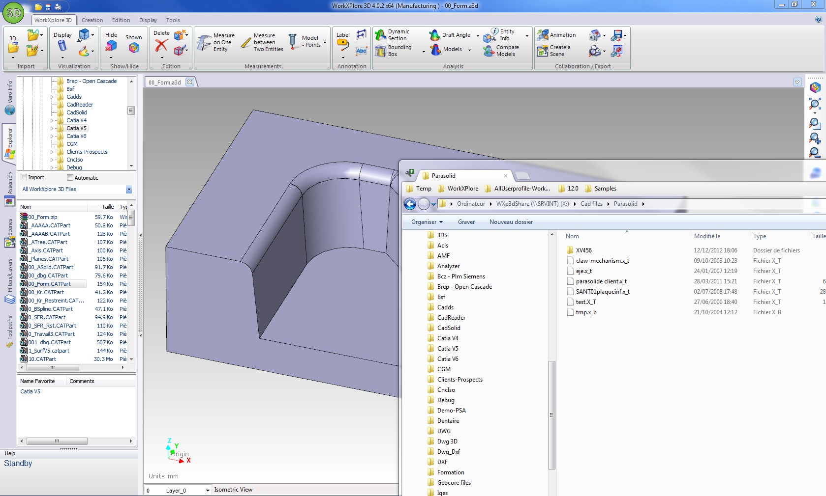WorkXPlore 3D提供极为广泛的 CAD接口,适用于各种数据类型:Catia V6®, Catia V5®, Catia V4®, Siemens NX®, Parasolid®, Creo®, SolidWorks®, Solid Edge®, Autodesk Inventor®, Acis®, JT®, Cadds®, IGES, STEP, Unisurf, STL (binary and ASCII),OBJ (3D geometry from Wavefront technologies), PLY (Polygon File format), WorkNC® geometry, WorkNC® toolpaths, ISO toolpaths, DXF, DWG®.