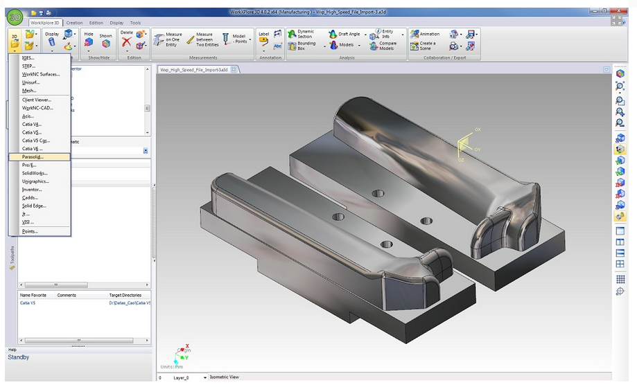 用户使用WorkXplore 3D可以快速的讲数据转换为标准的或者当前用户所能读取的数据格式(比如STEP, IGES, STL, WorkNC CAM 几何数据等等)。