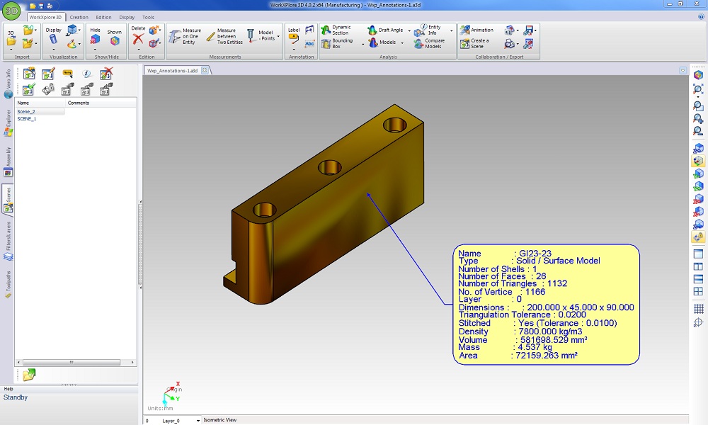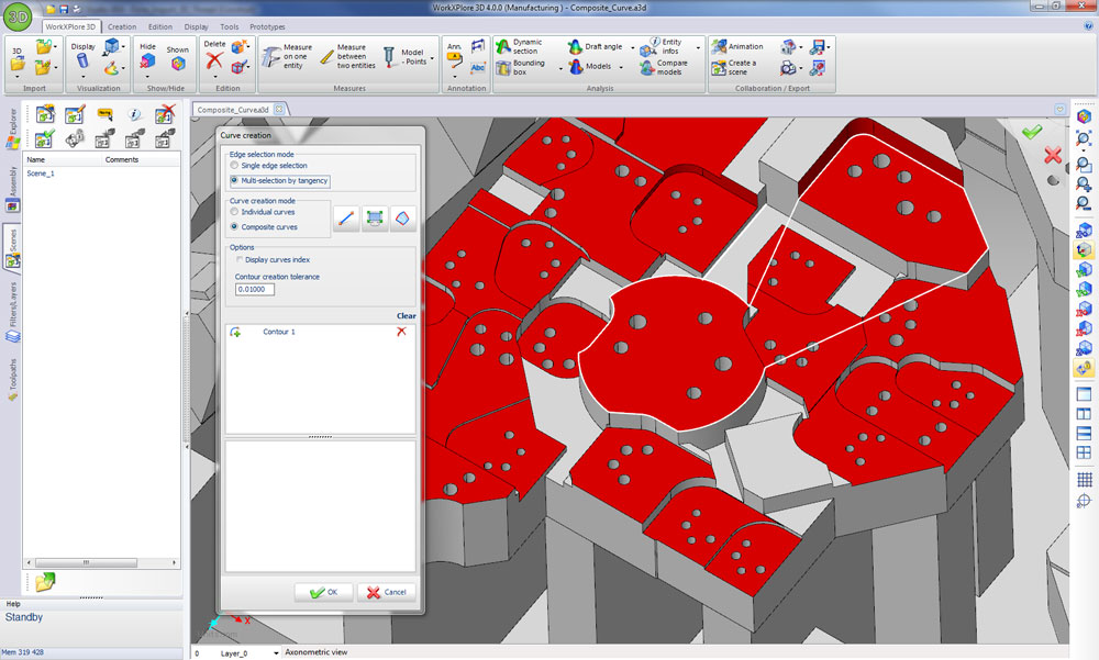 在WorkXPlore 3D 4.0的版本中,集成了新的实体类型,它可以允许多个曲线组合合并成一个实体的同时保留原来的单独的实体。创建过程很简单但功能强大的同时,除了曲线来合成实体,还可以使用实体和网格曲线。合成曲线可以分析一些有用的信息,如曲线长度,查看平面,是否是封闭的、平面以及每个图素组成的曲线。合成曲线也可以用于动态截面和动画指导。