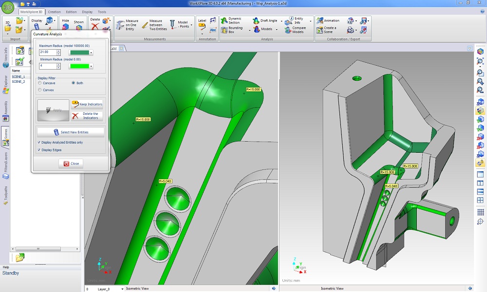 曲率分析是一个很有价值的功能,它有利于用户通过分析快速评估成本和生产时间。曲率分析可以自动的着色,用户也可以插入测量的值。