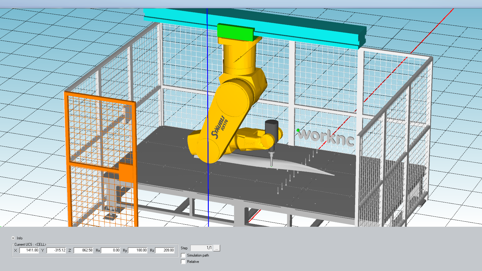 WorkNC机器人模块可以模拟换刀步骤,旋转台,安全护栏的位置......这些不同的元素可从CAD文件导入,并且在应用的过程中都经过碰撞检测。
