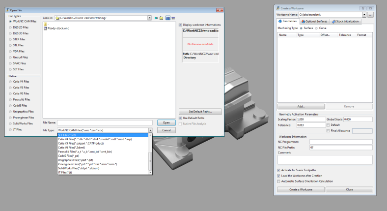 WorkNC的CAD数据读取功能的兼容性比较广泛,可以读取各种格式的CAD数据,这不仅使您可以更高效的和客户交流,也为您的客户节省了转换不同CAD数据的时间。