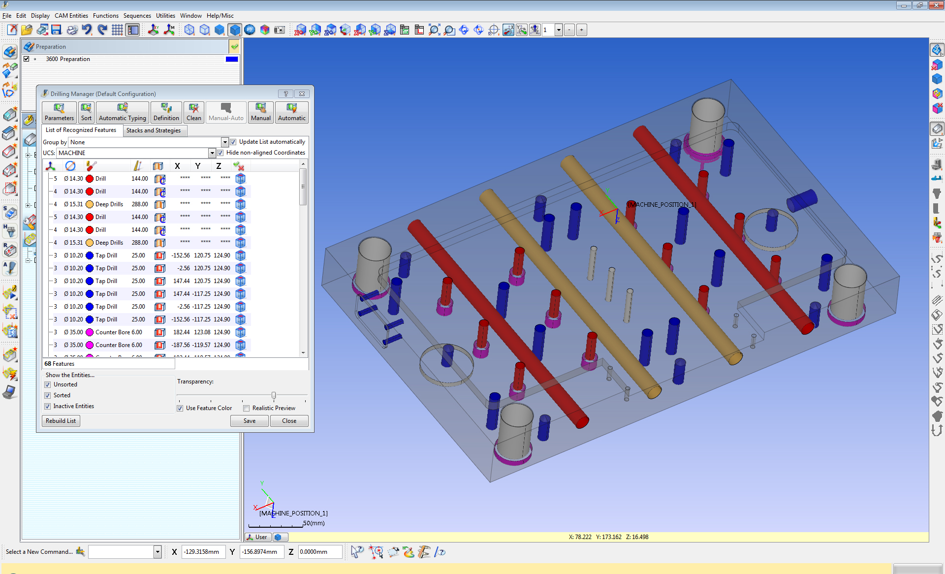 自动特征探测、预定义的钻削顺序选择、自动生成的钻削操作、深孔及相交孔钻削管理;