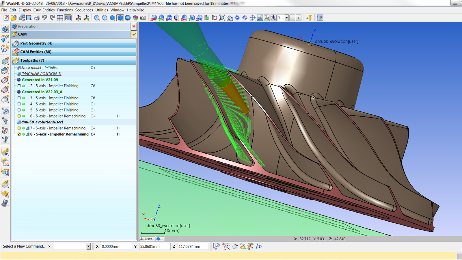 WorkNC AUTO5是5轴加工领域真正具有革命性的创新。WorkNC 5轴加工可将3轴刀路自动转换为5轴刀路,并充分考虑到用户所选择的5轴铣削中心。
