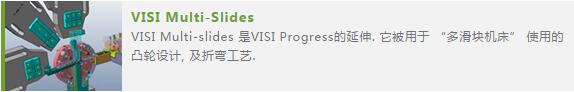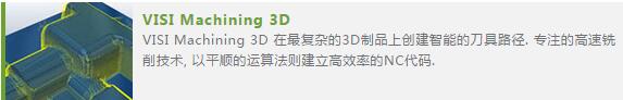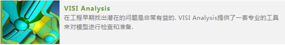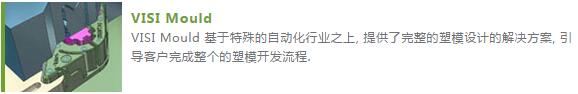 VISI是一套完整而全面的模具业专用的先进的CAD/CAM/CAE解决方案. 它提供了一套独特的整合工具, 完全集成了线架构, 曲面和实体混合建模, 综合高速路径专用的2D, 3D和5轴加工策略. 此外, VISI软件还涉及到日益重要的模具设计领域, 拥有全3D冲模设计 (Visi-Progress), 塑模设计 (Visi-Mould) 和塑胶模流分析 (Visi-Flow) 等模块.